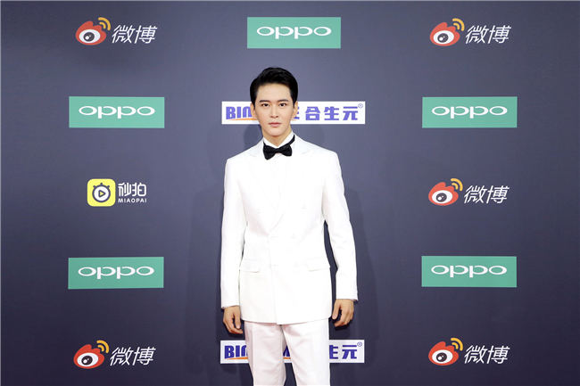 黄宥明一袭白衣帅气亮相微博之夜红毯,镜头下的他身着经典双排扣西装礼服,微露简洁的白色衬衫,配上俏皮的黑领结,不仅展露出优雅风度又不失别样青春感。