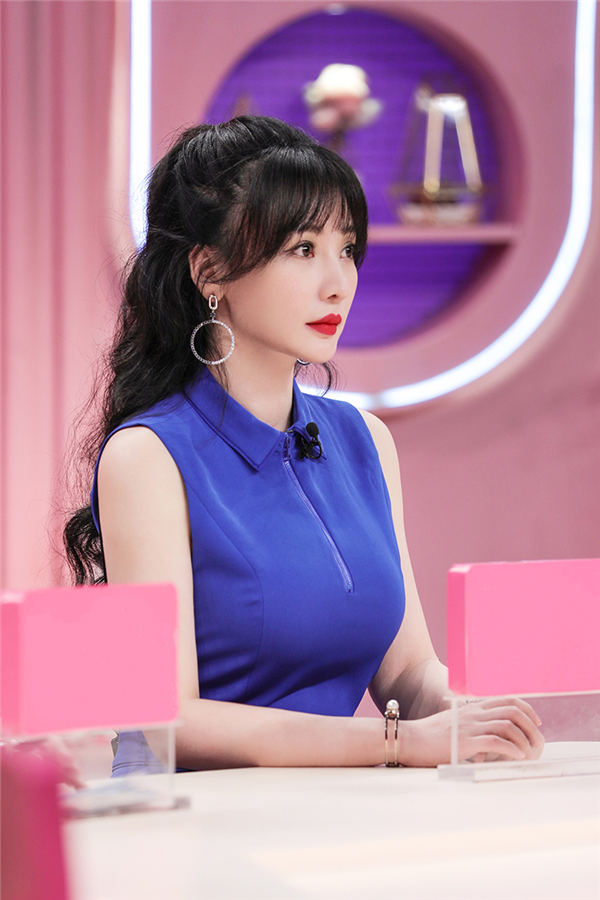 柳岩《亲爱的结婚吧》宝蓝裙清新感性 谈为父母补办婚礼落泪
